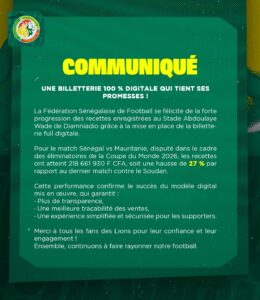 Non classé Billetterie match Sénégal-Mauritanie du 14 octobre 2025 Partager FacebookTwitterWhatsAppGoogle+Courriel